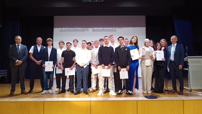 Ein weiterer Höhepunkt des Abends war die Verleihung der Preise und Sonderpreise. Es konnte sich Nele Straupe (R10C) freuen, die als Schulbeste mit einem Notenschnitt von 1,2 ein sagenhaftes Ergebnis erzielte. Ein Sozialwissenschaftlicher Preis ging an Lina Hartmann und Marie Trabold (beide R10B), den Paul-Schempp-Preis von Religion erhielt Sophia Monaci (R10B). Der Otto-Neumeister-Preis ging an Maya Wesner (R10B) und Nele Straupe (R10C).