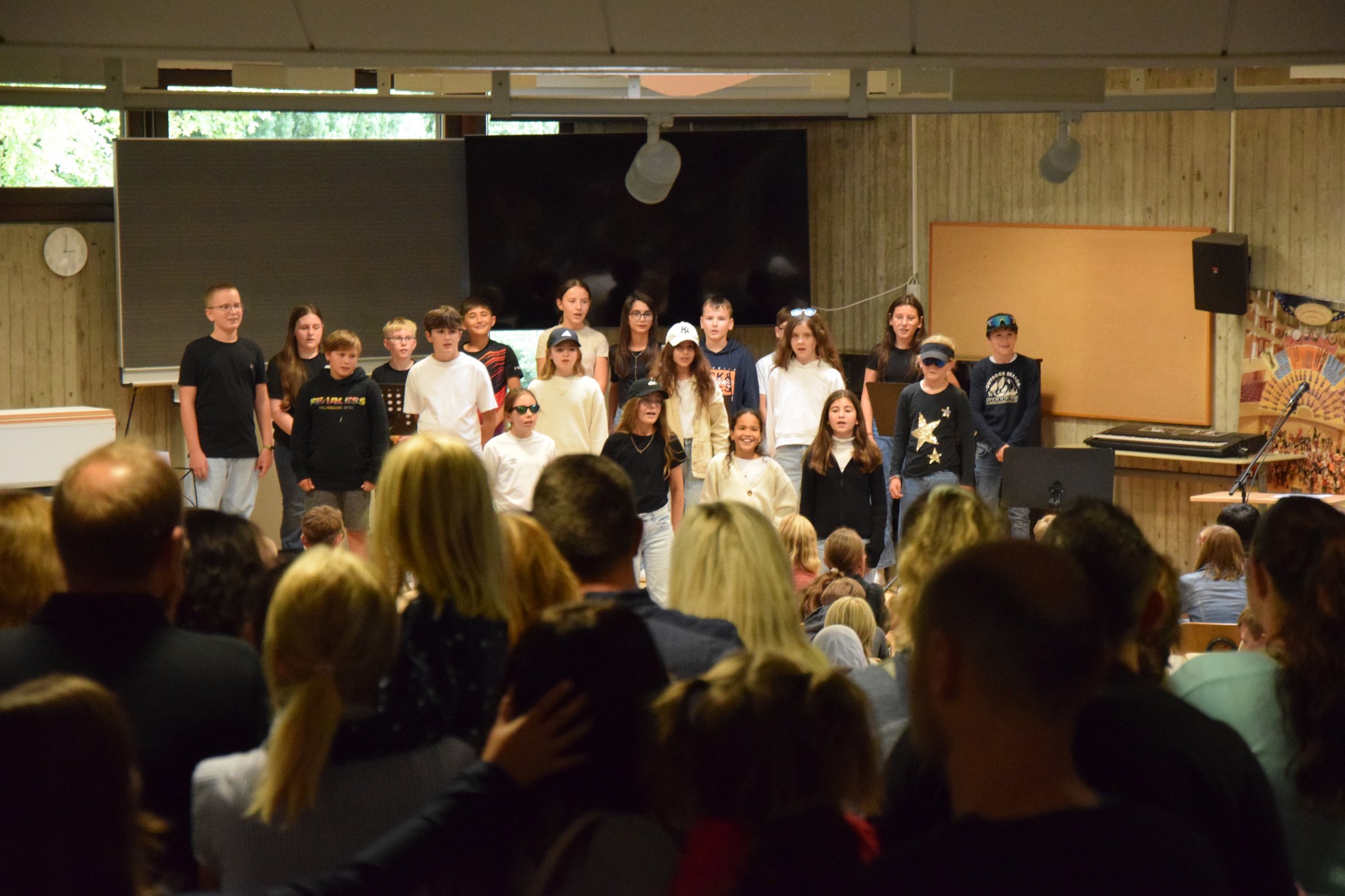 Mit einem fetzigen Willkommenssong begrüßte die Klasse R6b ihre neuen Mitschülerinnen und Mitschüler. Geleitet wurde der Chor von Kathrin Siegmann.